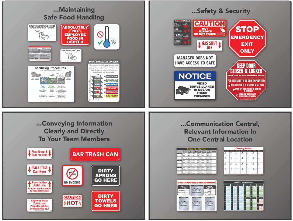 At Alco Products, we are proud to offer KitchenVisuals™, a line of clear, well-designed labels and signs that help restaurant managers maintain consistent quality, food safety, and efficiency. These tools simplify adherence to standard recipes, checklists, and food safety standards for restaurant employees. Our KitchenVisuals™ products are developed in tandem with brand management and incorporate valuable suggestions from restaurant managers, resulting in customized, brand-specific solutions that resonate with our clients.