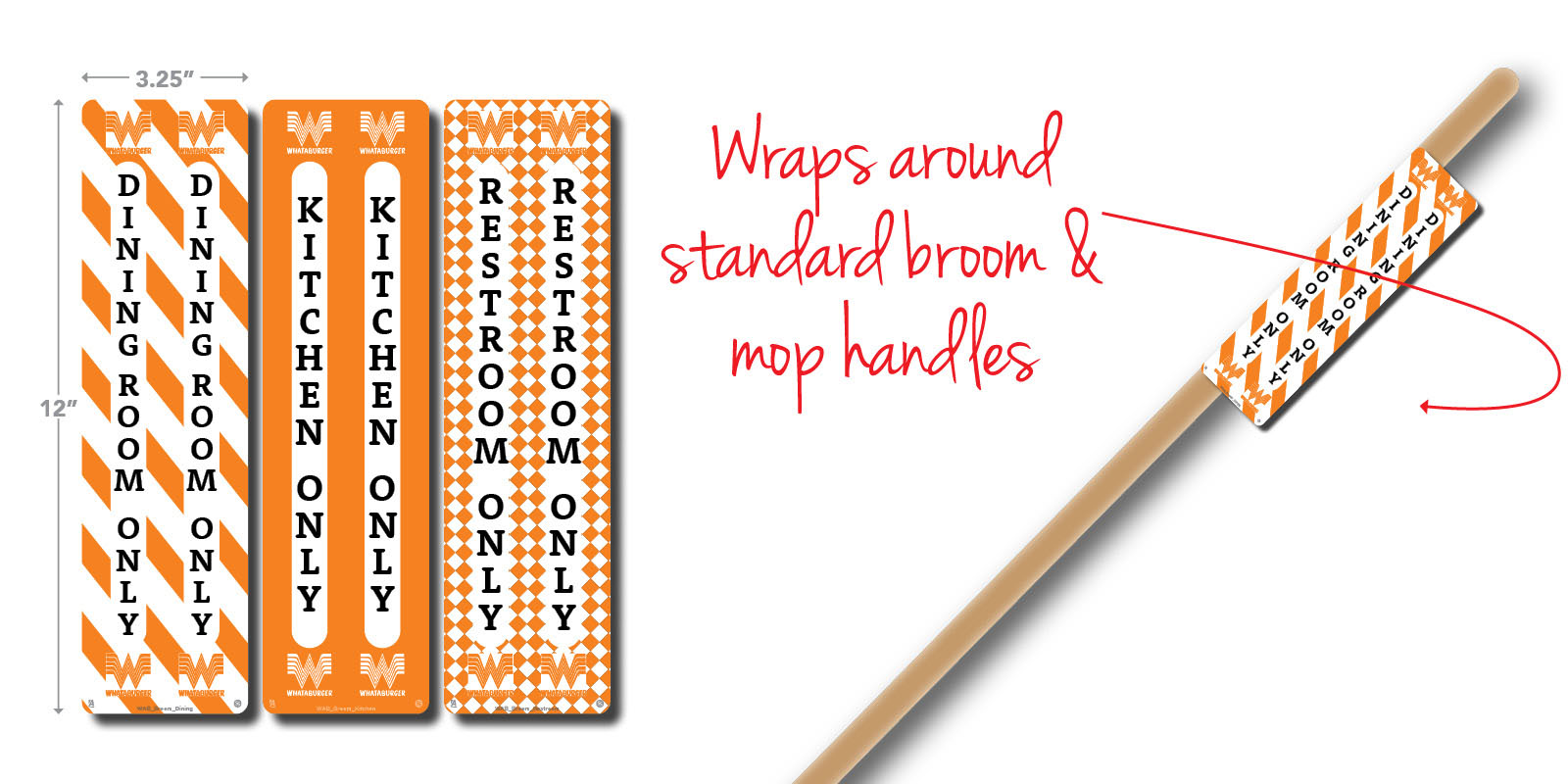 12″H decal that wraps around the broom & mop handles.