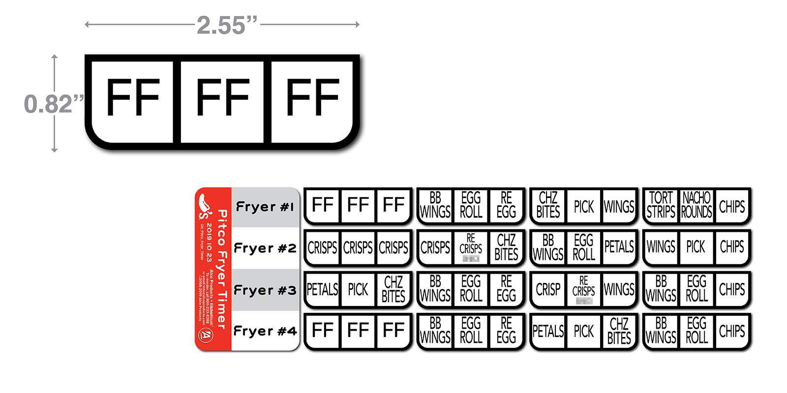Four sets of labels for Fryers #1, 2, 3 & 4.