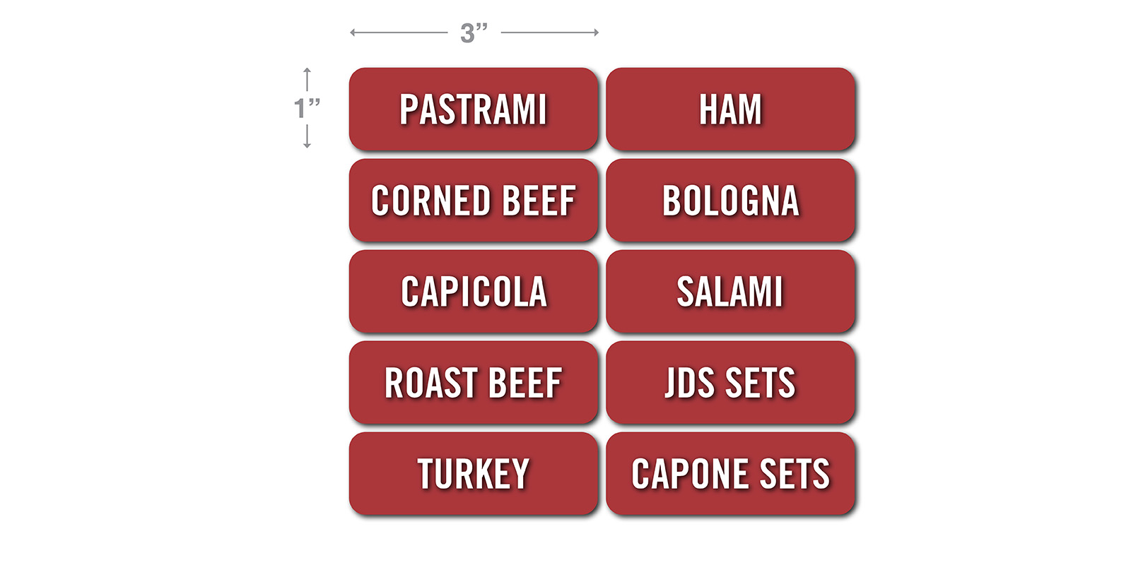 1″ H X 3″ W Deli Meat Labels. Set of 10.