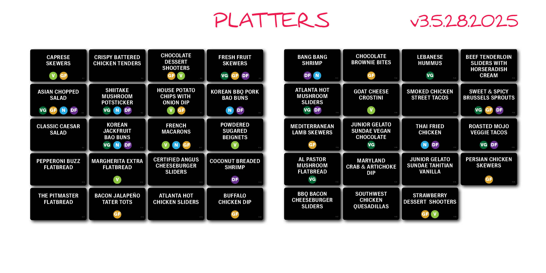 2″ H X 3.5″ W Event Menu Tags for Platters. Set of 39.