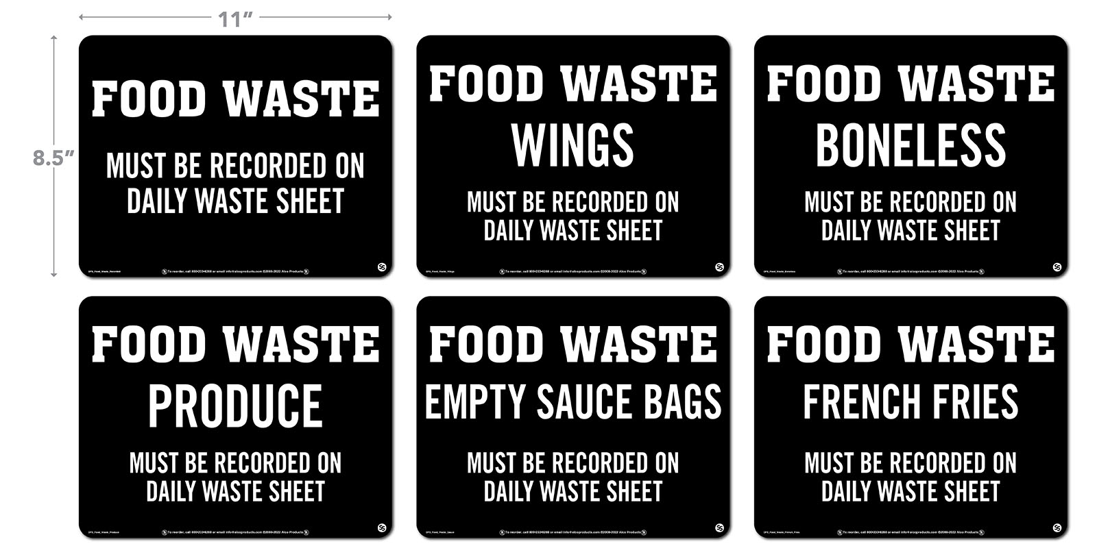 | Set or Individual Decal | Set of 5, Food Waste Recorded Decal, Food Waste Wings Decal, Food Waste Produce Decal, Food Waste Boneless Decal, Food Waste Empty Sauce Bags Decal, Food Waste French Fries Decal |