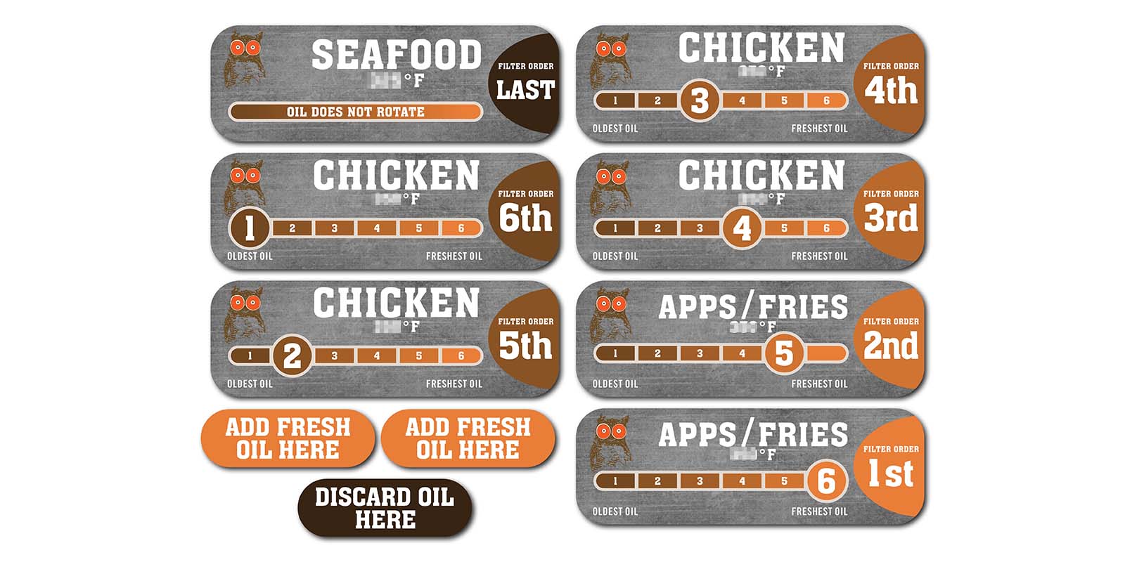 Labels each fryer for proper oil rotation.