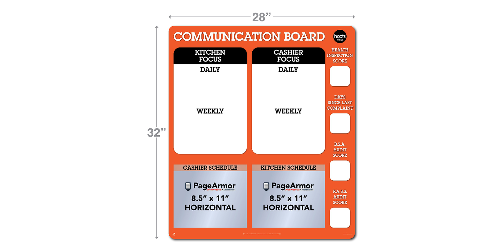 32″ X 28″ Dry-erase Communication Board.