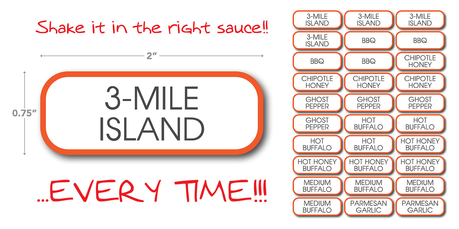 Set of 40 Shake Station Labels. Each is 0.75″ H X 2″ W.