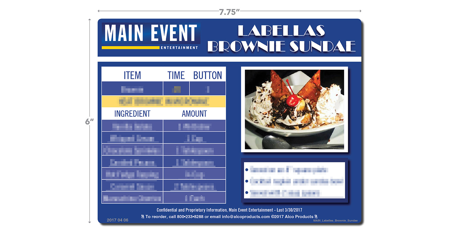 6″ H X 7.75″ W Labellas Brownie Sundae Decal with Ingredients and plating instructions. Updated 3/30/2017.