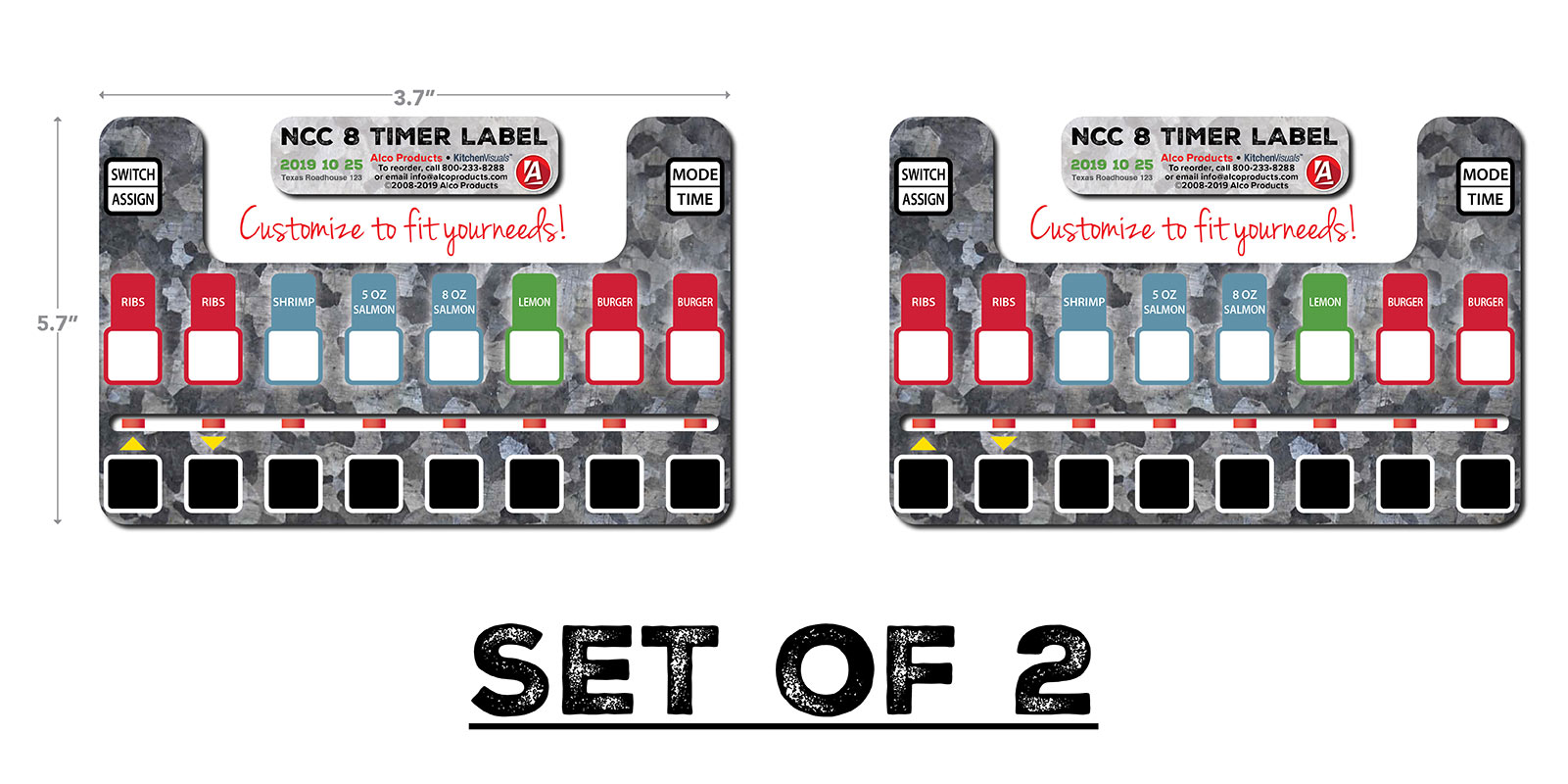 3.7″ H X 5.7″ W decal for the 8 button NCC Timer faceplate. Set of 2 decals.