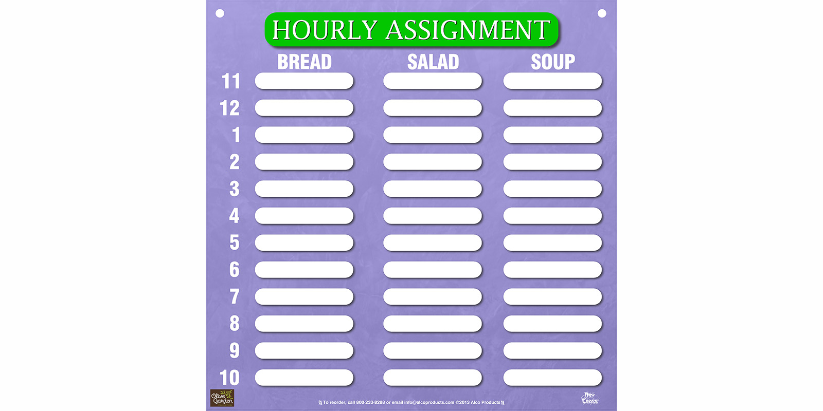 24″H X 24″ W – Hourly Assignment Dry Erase Comm Board.