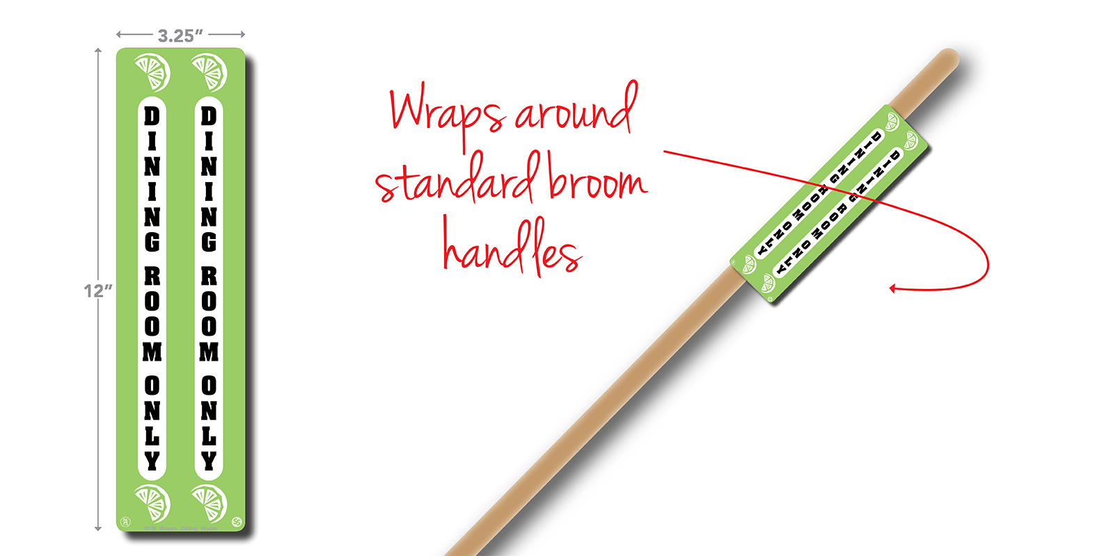 12″H decal that wraps around the broom handle.