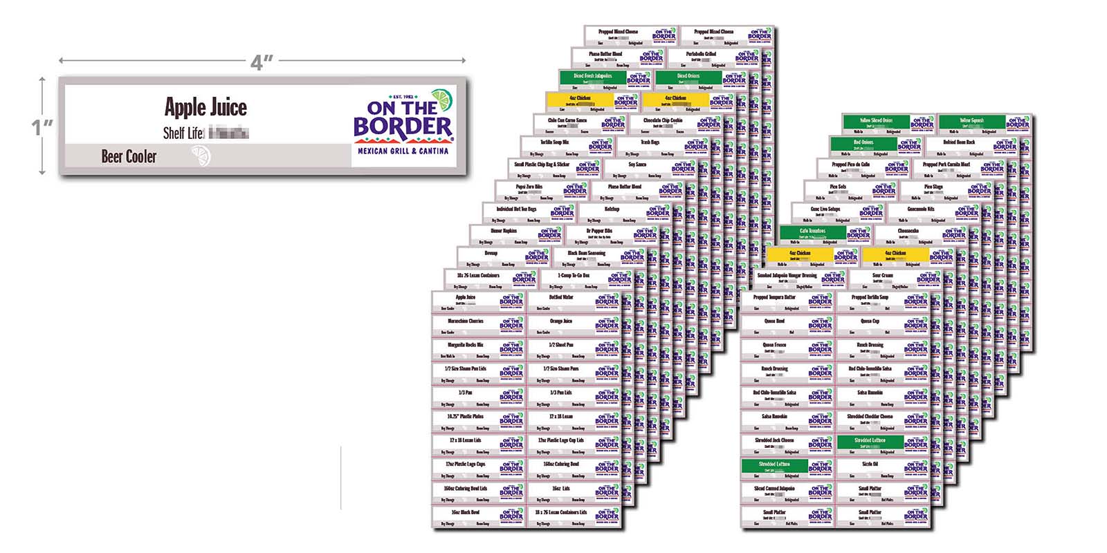 Set of 430 labels, each is 1″H x 4″W. Includes labels for all inventory items in four categories: Bar Cooler, Dry Storage, Freezer, and Walk-In. Shelf Life Labels help you improve organization in storage areas.