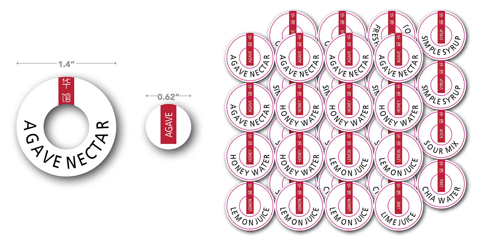 Set of 37 Squeeze Bottle Top Decals for the Bar.