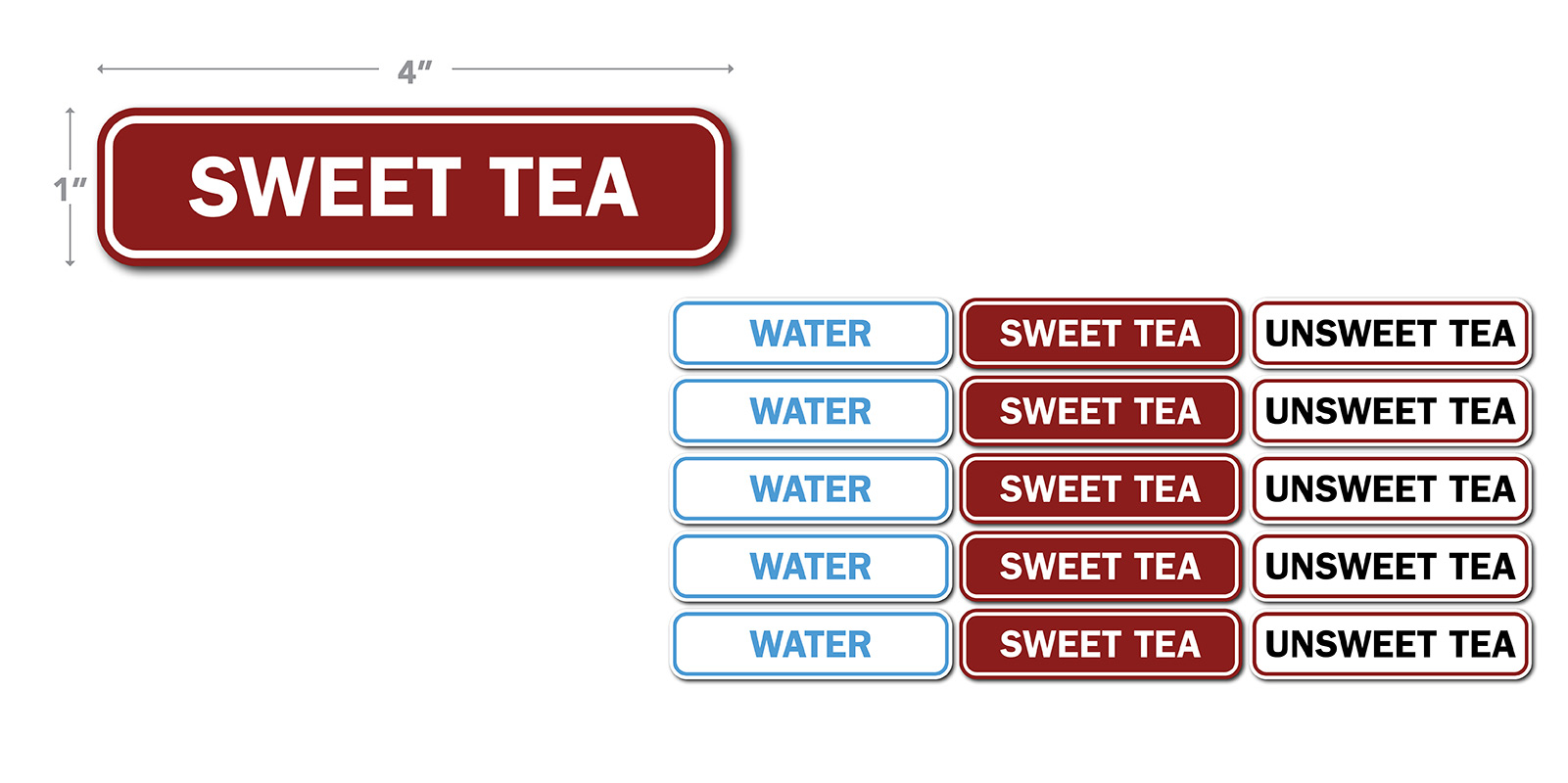Set includes 5 each of WATER, SWEET TEA, and UNSWEET TEA.