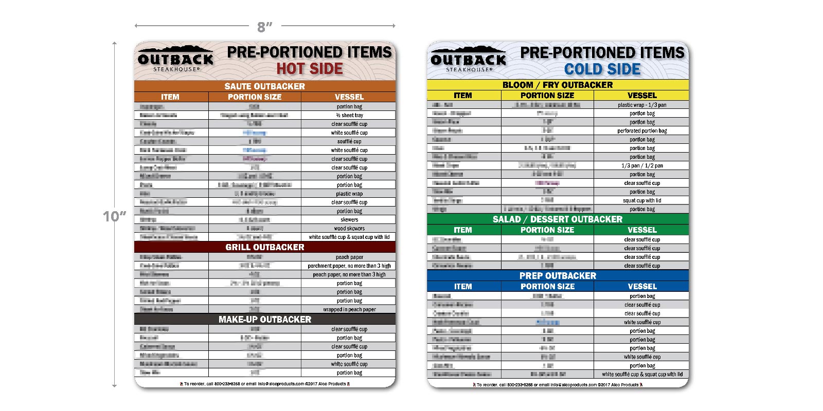 Set of two 8″ H X 10″ Pre-portioned Items Decals.