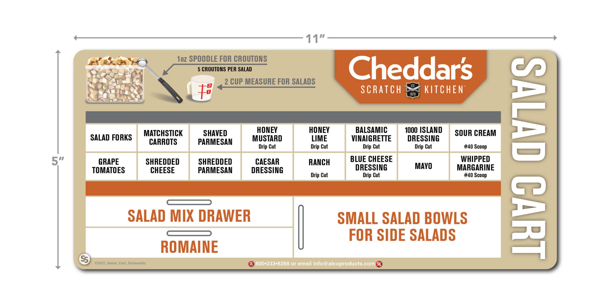 5″ H X 11″ W Salad Cart Schematic Decal. Printed on Alco SuperStick for a longer lasting label.