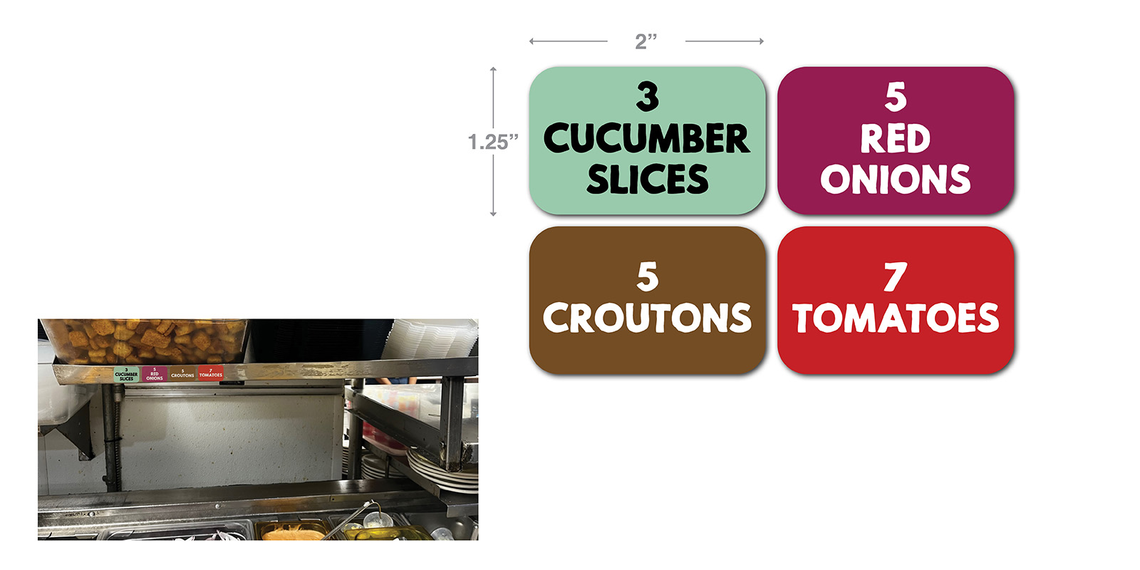 Place on the Salad Line to help staff remember the basics of the house salad.