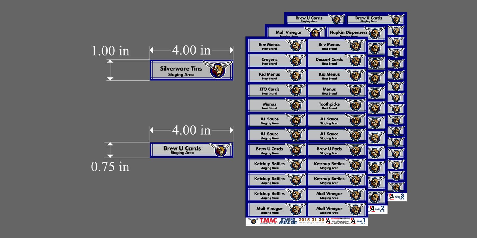 Set of 42 1″H x 4″W and 15 0.75″H x 4″W Staging Areas Decals.
