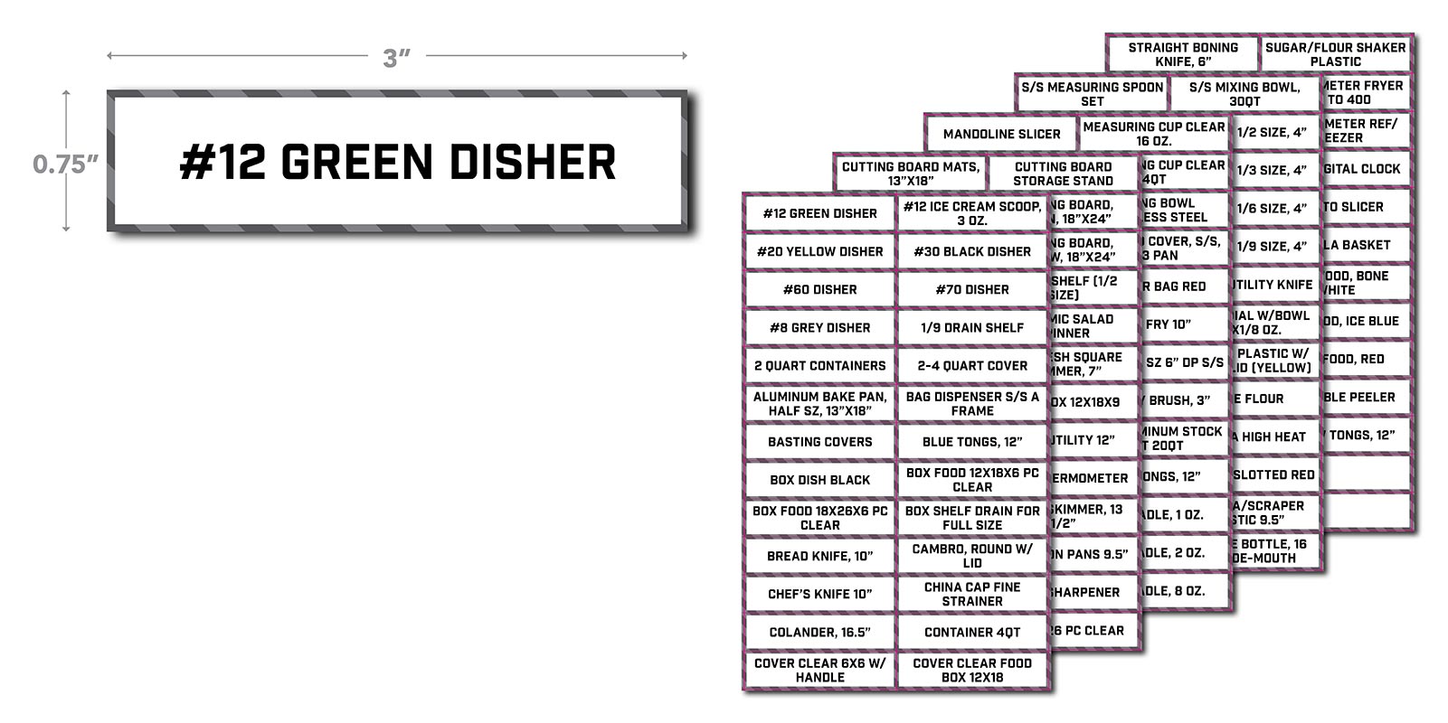 Set of 126 utensil labels for BOH Supply.