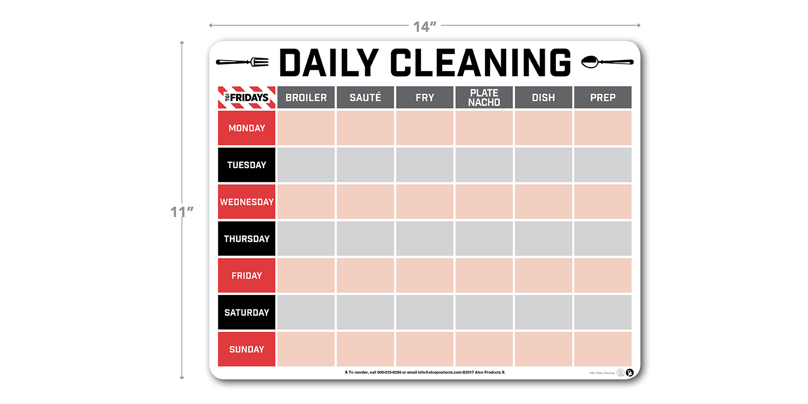 11″ H X 14″ W Dry-erase Daily Cleaning Board.