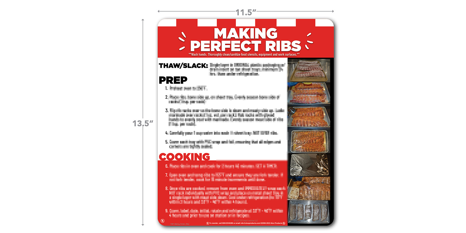 11.5″ H X 13.5″W Making Perfect Ribs Decal that lists the steps to prepping and cooking perfect ribs.