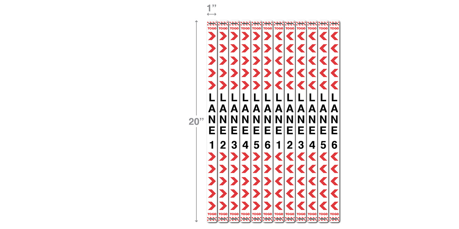 Set of 12 20″ H X 1″ W To Go Table Lane Decals.