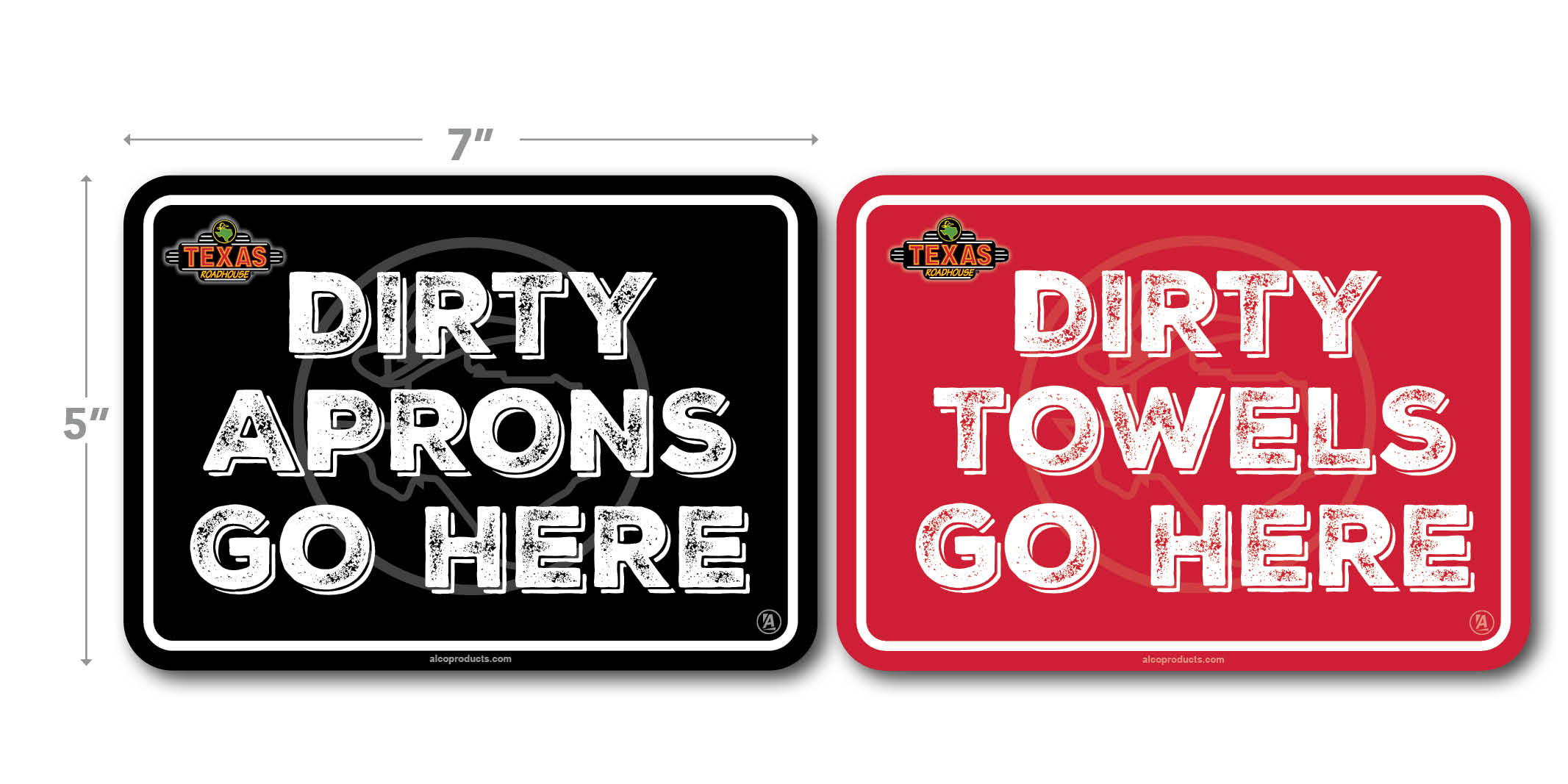 Clearly designate the bucket/hamper where dirty towels and dirty aprons should be placed.