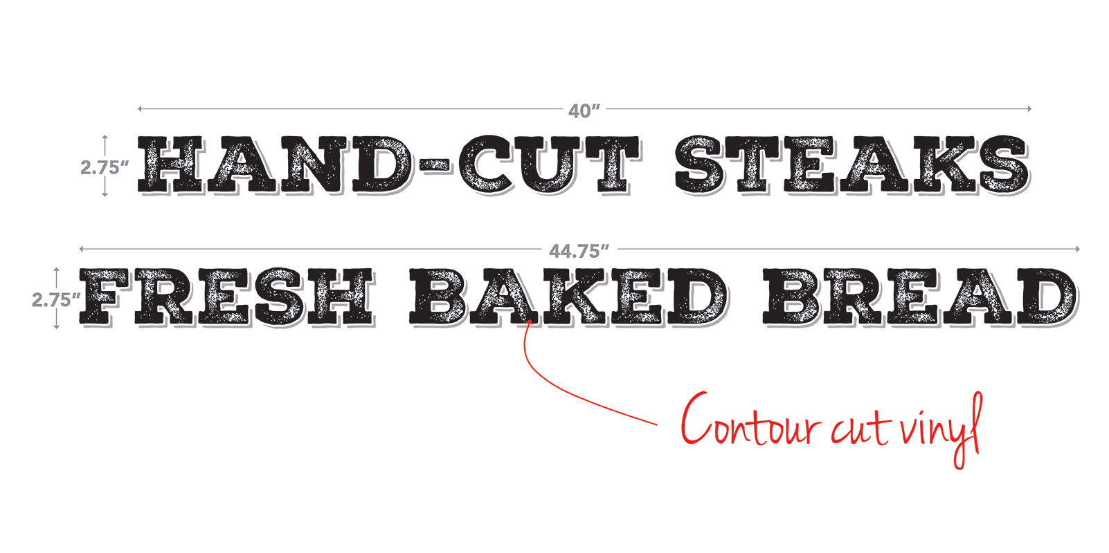2.75″H X 40″ W Lettering ready to be applied to the front of the glass case.